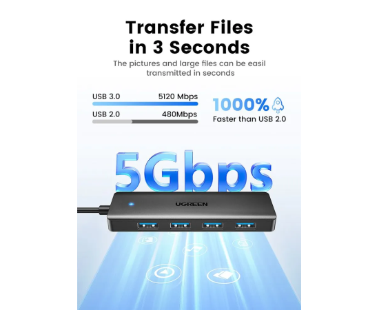 USB-Hub UGREEN CM219 25851 4-Port USB 3.0 Hub With USB-C Power Port Black