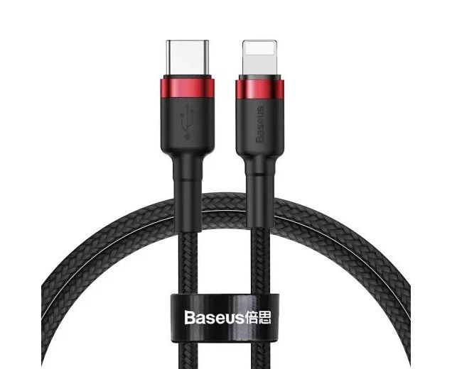 USB-кабель Baseus CATLKLF-91, Type-C - Apple 8 pin, ткань, 1.0 м, круглый, мет. раз., черно-красный