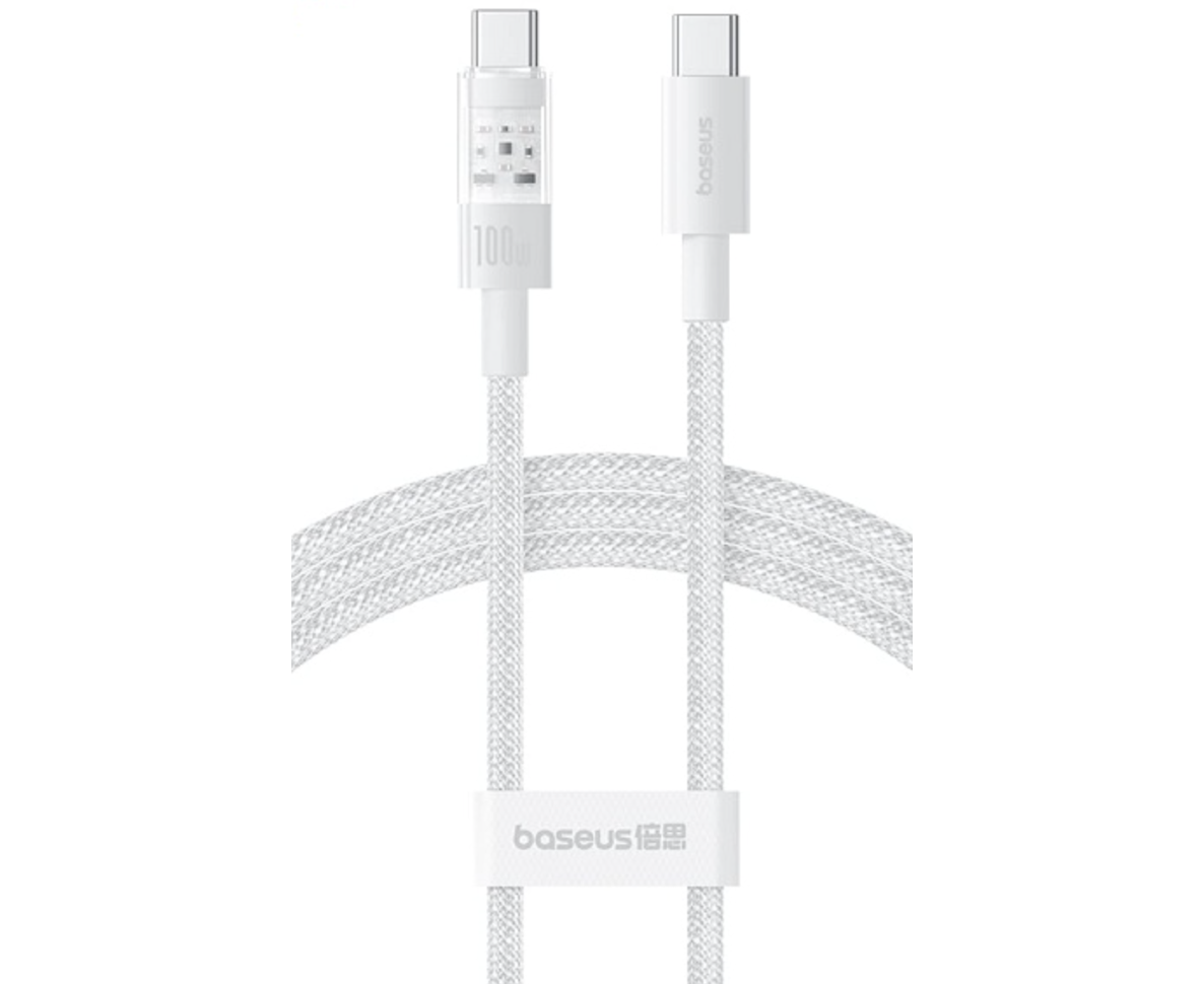 USB-кабель Baseus P10383100211-00, Type-C - Type-C, ткань, 1.0 м, круглый, поддержка PD 100W, белый, фирменная упаковка