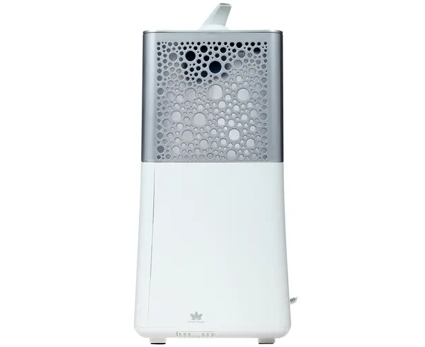 Увлажнитель воздуха отличается многофункциональностью. Устройство сочетает в себе возможности разных бытовых приборов: тренажёра для дыхательной гимнастики, часов, метеостанции. В конструкции имеется турбораспылитель и подсветка.