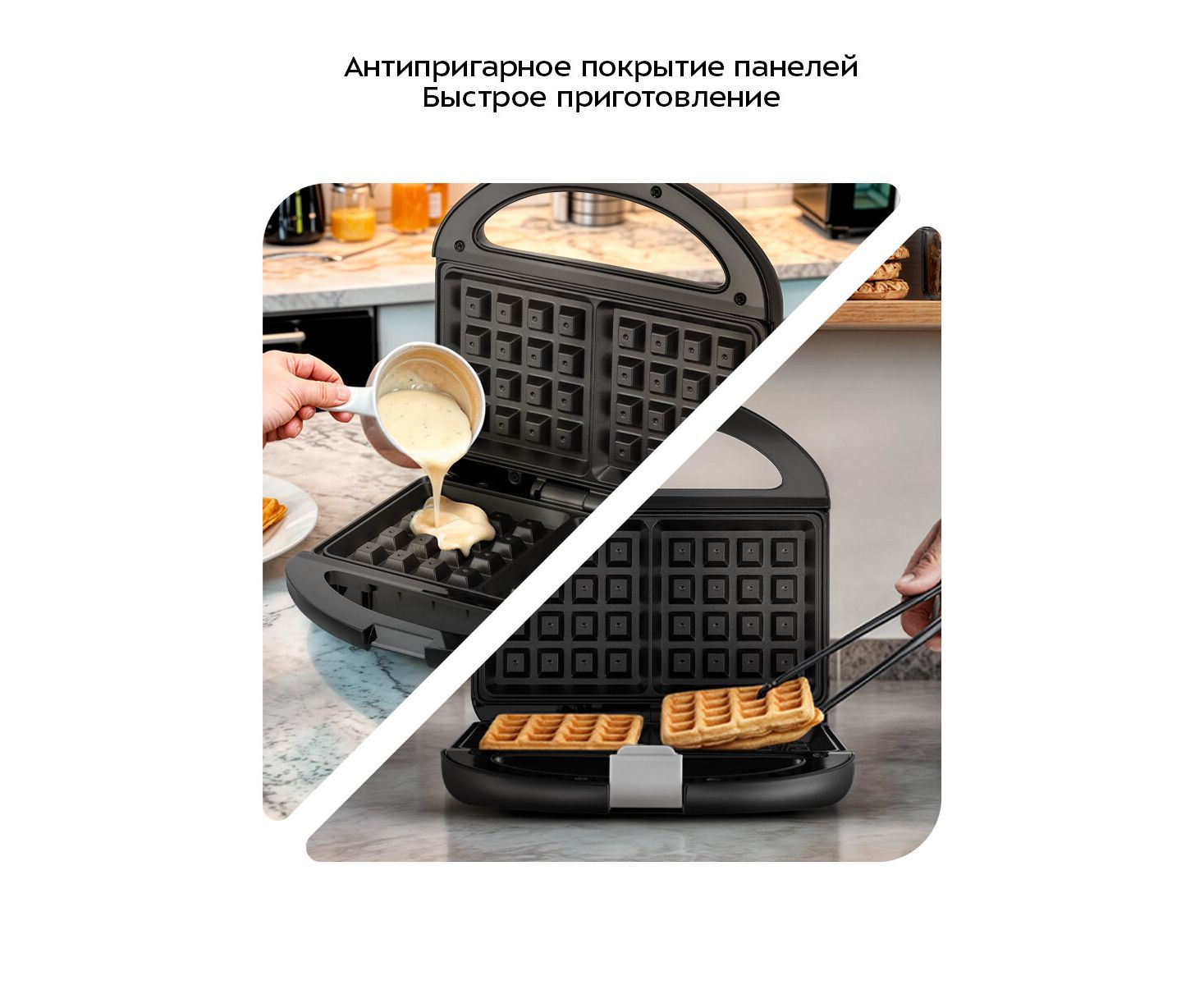 Стильный универсальный дизайн вафельницы впишется в любой кухонный интерьер. Разнообразные рецепты и простота приготовления сделают ваш завтрак еще вкуснее!