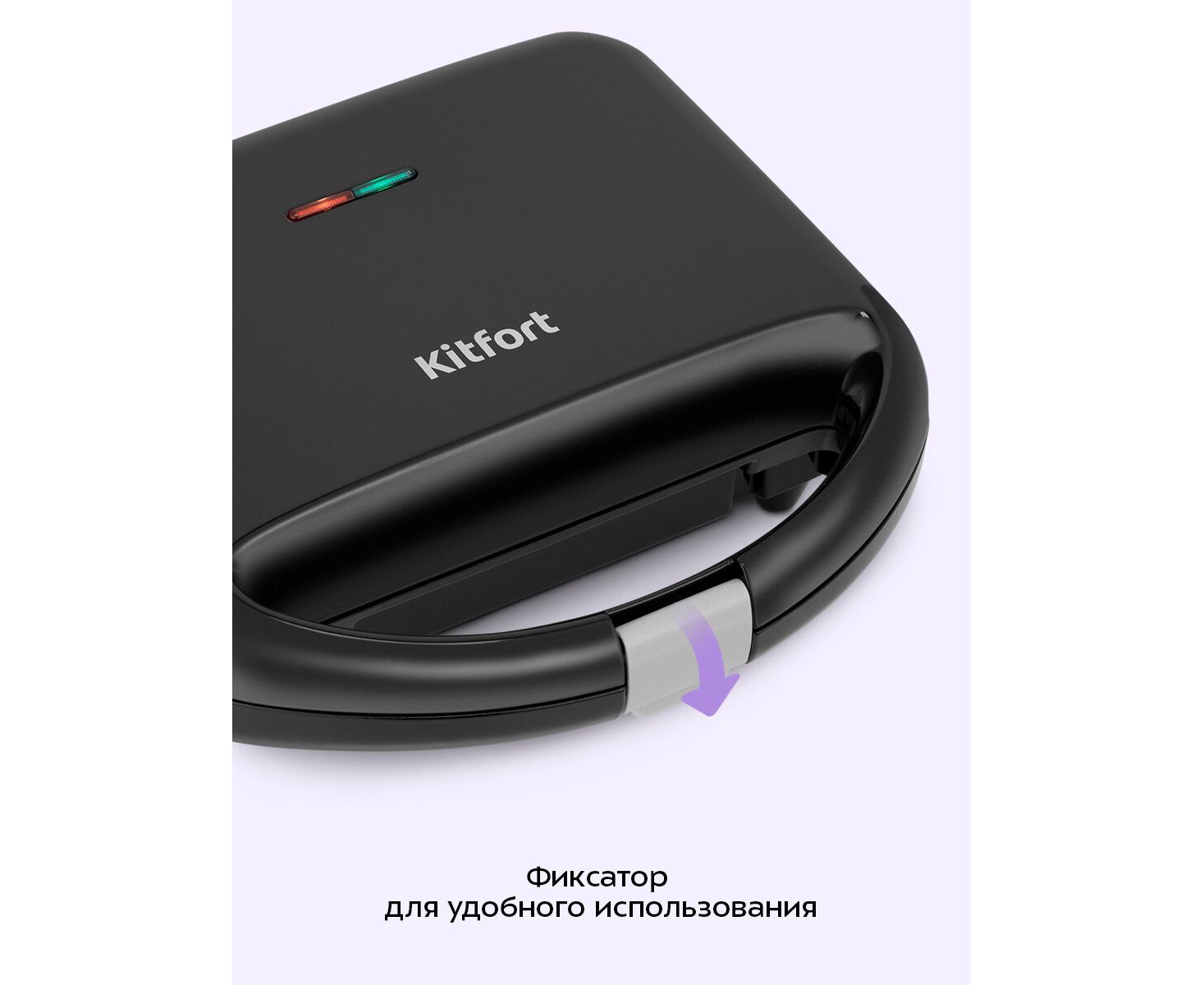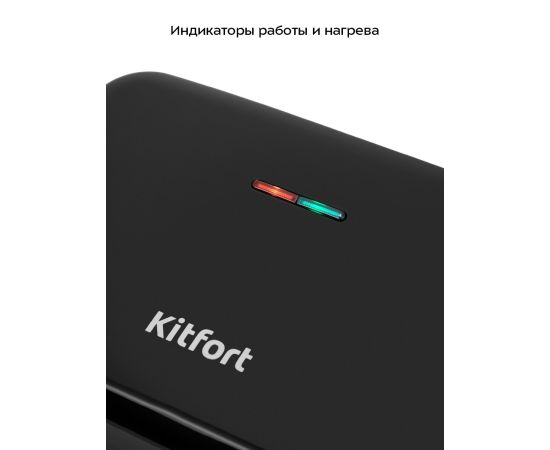 Вафельница Kitfort оснащена индикаторами питания и нагрева, а также термостатом для поддержания температуры панелей. Встроенный термостат поддерживает температуру панелей.