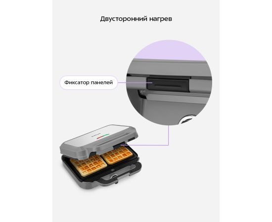 Стильный универсальный дизайн вафельницы впишется в любой кухонный интерьер. Для удобства ухода панели съёмные – их можно мыть под проточной водой. Разнообразные рецепты и простота приготовления сделают ваши блюда вкуснее!