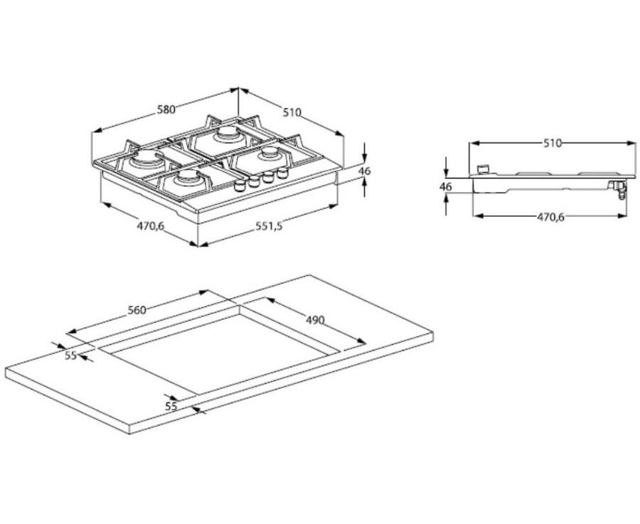 Всего конфорок: 4 шт