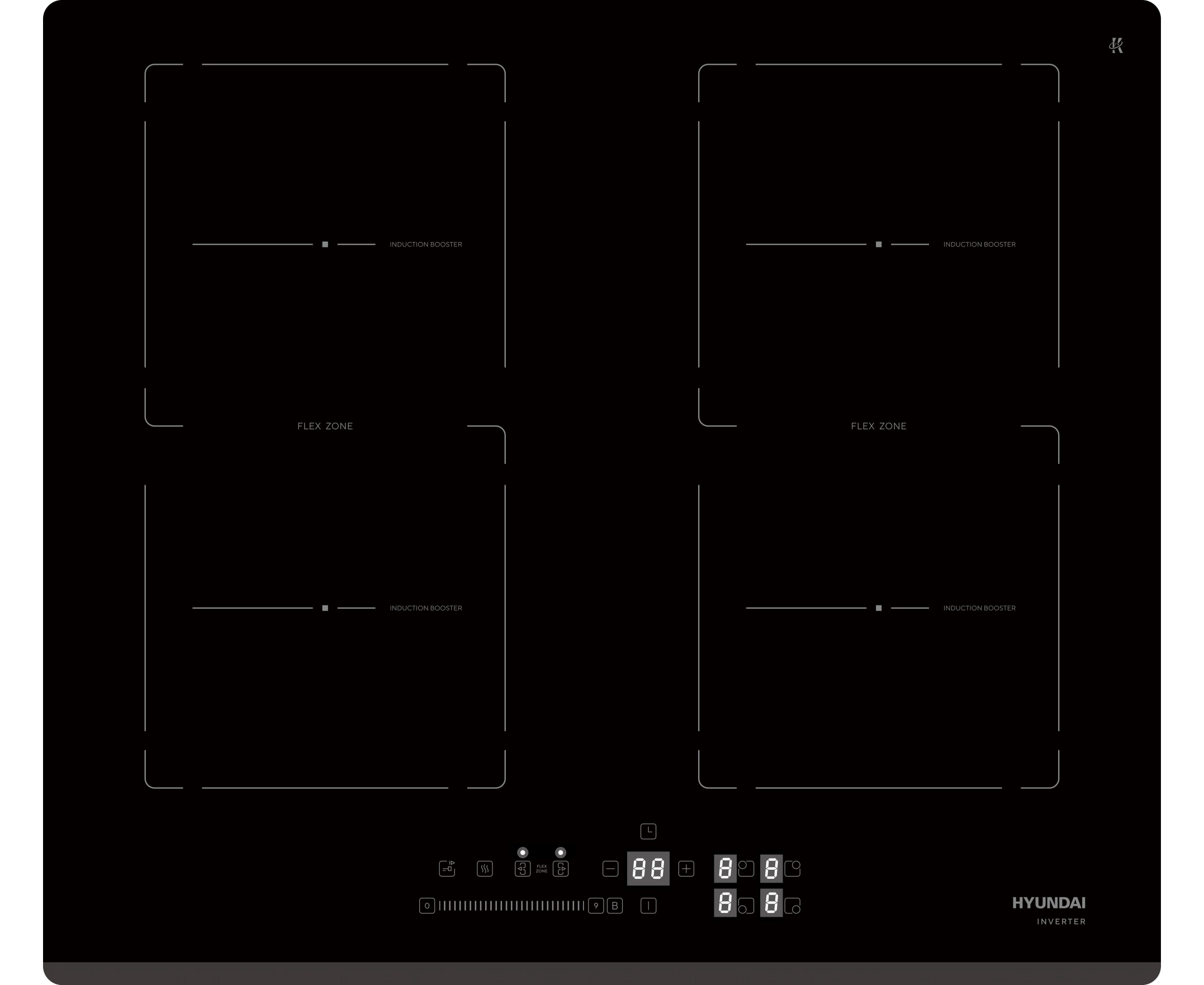 функция INDUCTION BOOSTER (автозакипание), INVERTER , функция FLEX ZONE (объединение зон нагрева), функция STOP&GO, функция KEEP WARM