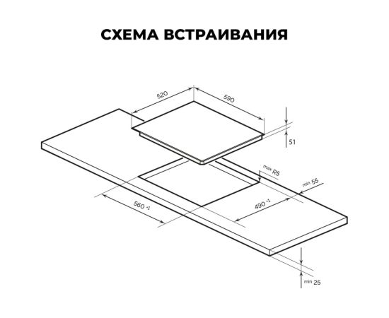 -Ширина для встраивания 600 мм Современный индукционный нагревательный элемент демонстрирует высокую скорость нагрева, существенно экономит электроэнергию и сокращает время приготовления блюд