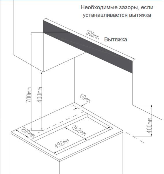 Размеры ниши для встраивания (ШхГ): 262 х 492 мм