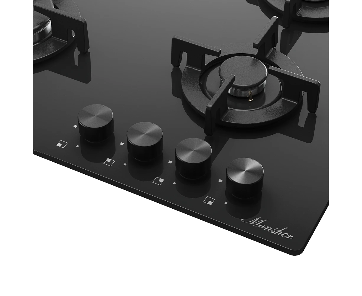 Варочная поверхность MONSHER MGG 64 Noir High-Tech, газ, 59см, газ-контроль, автоматический электроподжиг, чугунные решетки