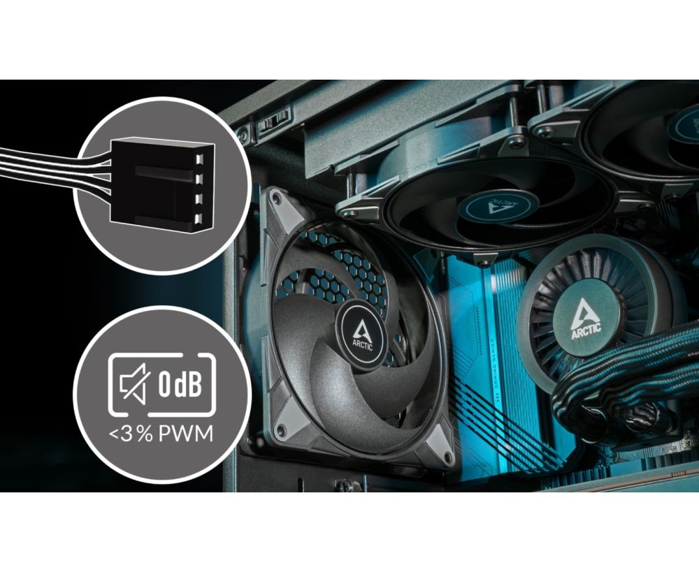 Режим 0 дБ — нулевая частота вращения. Скорость вентилятора можно снизить до полной остановки с помощью ШИМ (0 об/мин ниже 3 % ШИМ). Это обеспечивает бесшумную работу в режиме ожидания и в то же время гарантирует максимальную производительность, когда это необходимо. Таким образом, P14 Max обеспечивает несравненно динамичную регулировку скорости, поэтому поток воздуха можно идеально регулировать в каждом конкретном случае.