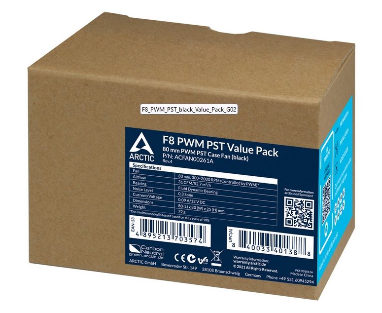 Вентилятор корпусной ARCTIC COOLING SF8 (ACFAN00261A) (Black) PWM PST Value pack (5pc)