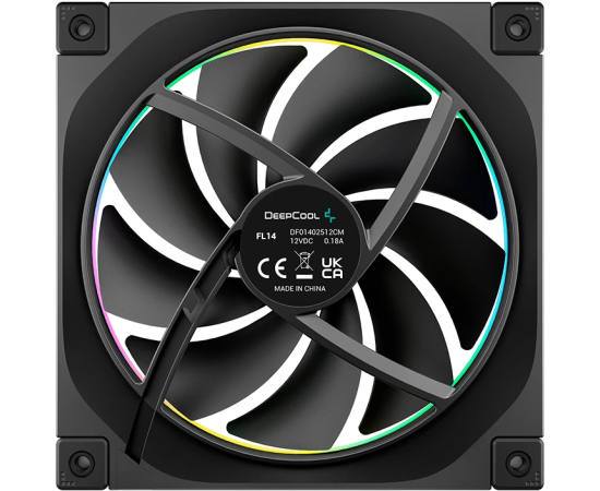 Вентилятор DEEPCOOL FL14 140x140x25мм (PWM, ARGB, черный, 500-1700об/мин) Color Box