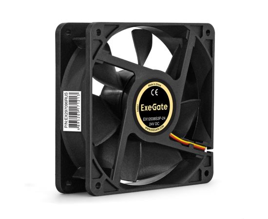 Вентилятор Exegate 24В DC ExeGate EX12038S3P-24 EX297096RUS (120x120x38 мм, Sleeve bearing (подшипник скольжения), 3pin, 3000RMP, 46,1dBA)