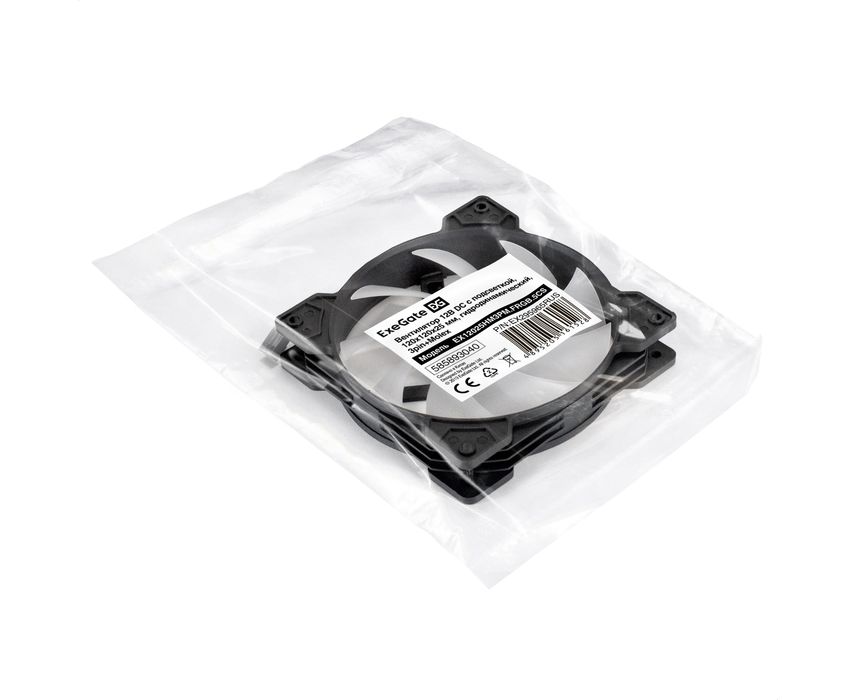 Вентилятор Exegate 2В DC (EX295965RUS) EX12025HM3PM.FRGB.5CS (120x120x25 мм, Hydraulic bearing (гидродинамический), 3pin+Molex 1с подсветкой