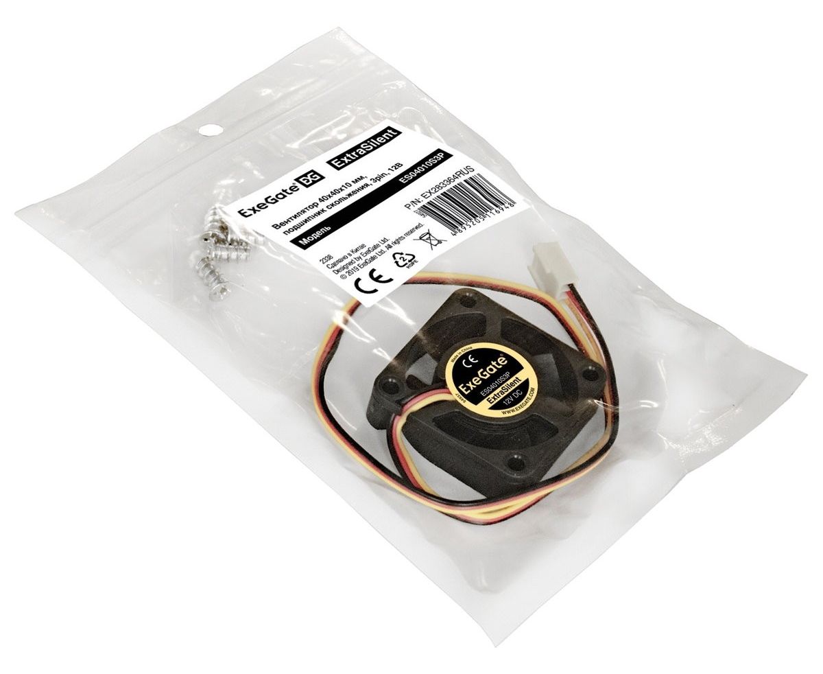 Вентилятор Exegate ExtraSilent ES04010S3P EX283364RUS 40x40x10 мм, подшипник скольжения, 3pin, 5000RPM, 24dBA