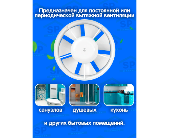 -Для постоянной или периодической вытяжной вентиляции санузлов, душевых, кухонь и других бытовых помещений.
