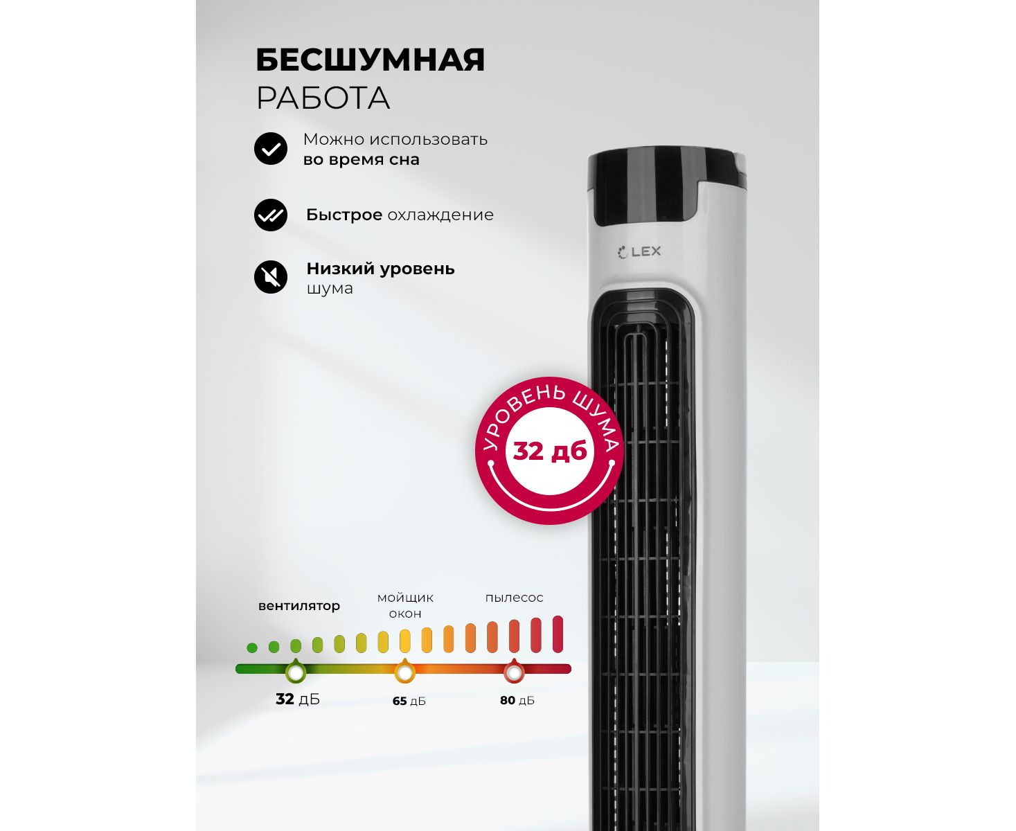 Вентилятор-колонна LEX LXFC 8366, 38" ПДУ, белый