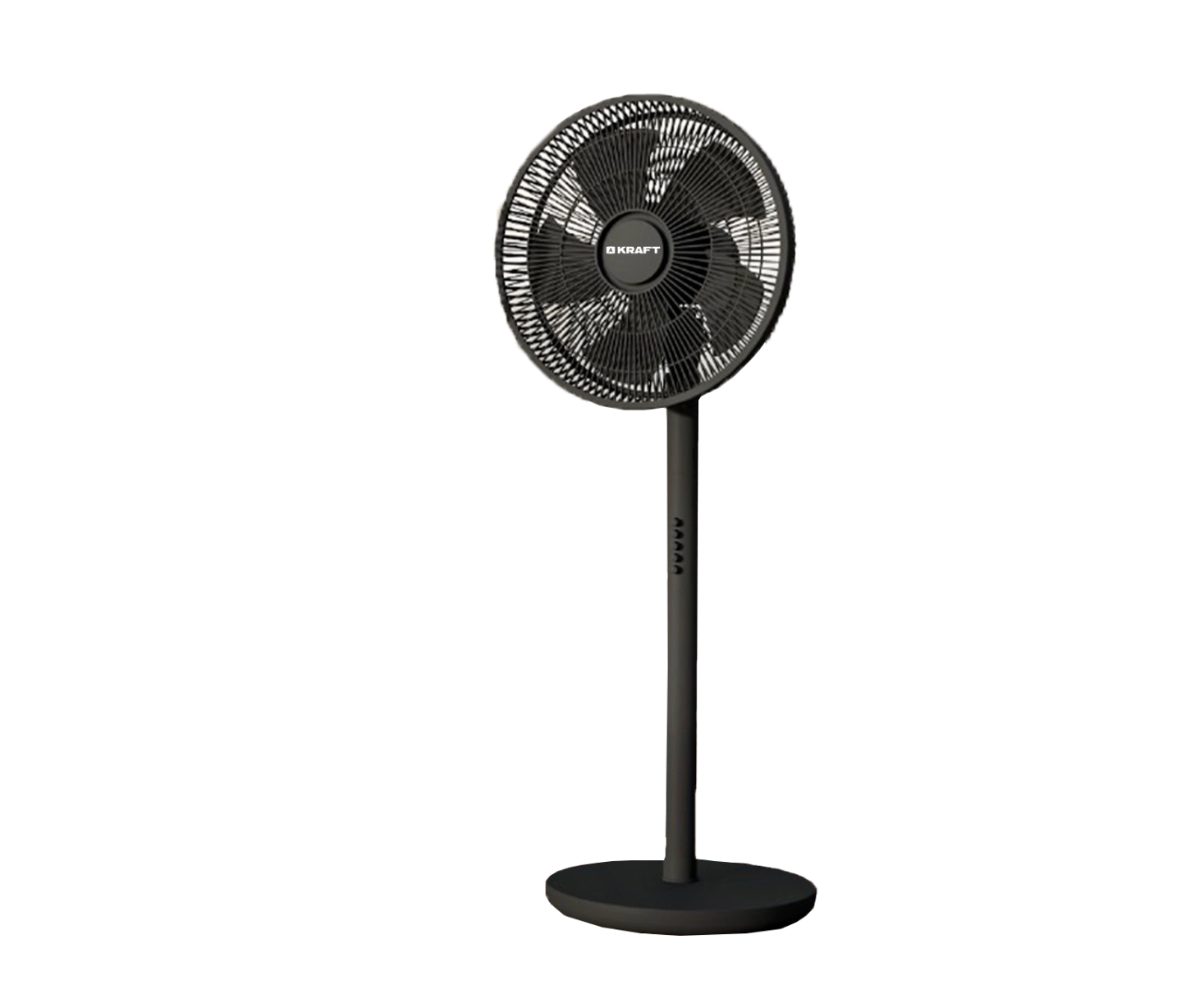 Напольно-настольный вентилятор KRAFT KF-FS161RBL, выполненный в чёрном цвете, обладает мощностью 60 Вт. Он оснащен винтом с пятью лопастями, которые вращаются в вертикальной плоскости.