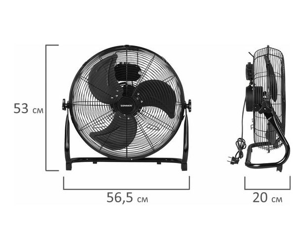 Вентилятор напольный SONNEN Fe-45a повышенной мощности, d-45см, 120Вт, 3 скорости, черный