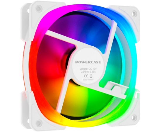 Вентилятор Powercase CM21-14W ARGB White 140x140x25мм (PWM, 4pin +ARGB Sync, 800-1500±10 об/мин) Bulk
