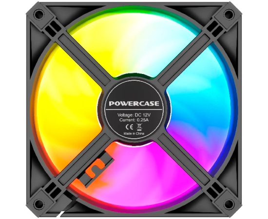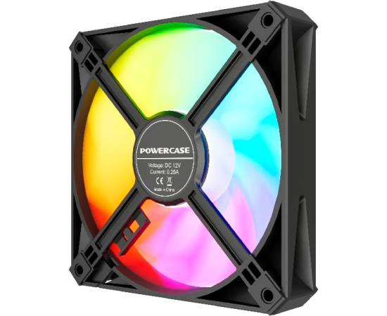 Вентилятор Powercase (M56-12 ARGB) Black 120x120x25мм (PWM, 4pin PWM (M+F)+ 3pin ARGB (M+F), 700-1500 об/мин) Bulk