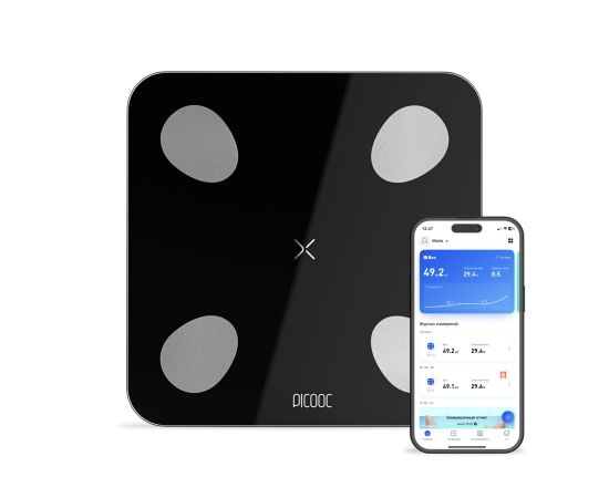 Picooc Mini Lite соединяются со смартфоном по Bluetooth. Все изменения автоматически сохраняются в приложении Picooc. Данные доступны в виде истории, наглядных графиков и детальной статистики. Про каждый из параметров можно прочитать подробнее, а благодаря цветовым подсказкам вы сразу увидите, какие из ваших показателей находятся в здоровом диапазоне.
