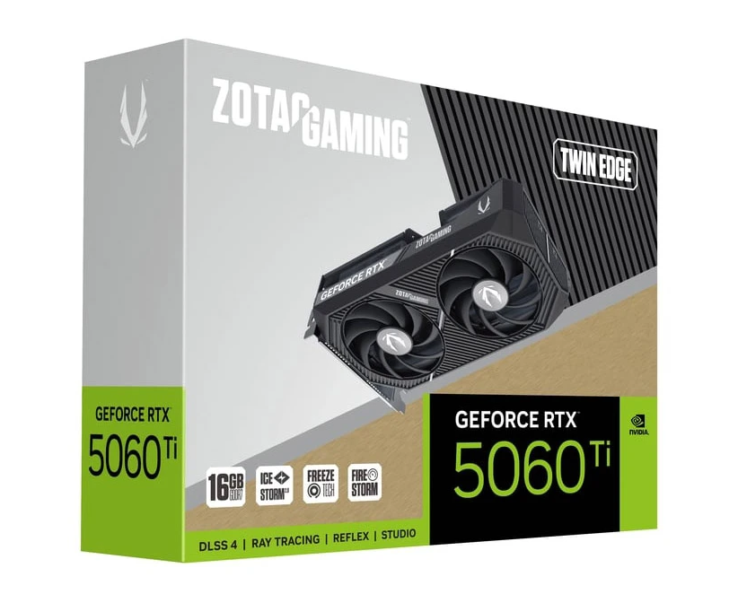 Видеокарта Zotac RTX5060Ti Twin Edge 16GB (ZT-B50620E-10M) GDDR7 128bit 3xDP HDMI 2Fan Medium Pack