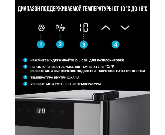 Диапазон температур: 10-18°C (разница с температурой окружающей среды не более 15 °С)