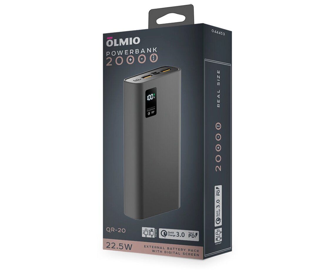 Внешний АКБ OLMIO QR-20 20000mAh 22.5W серый