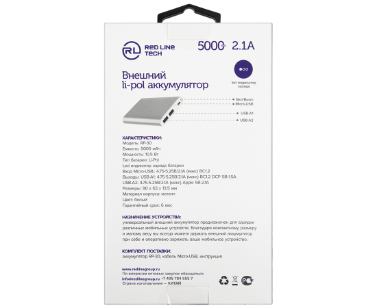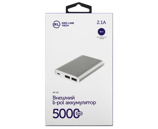 Внешний АКБ Red Line RP-30 (5000 mAh), металл, серебро