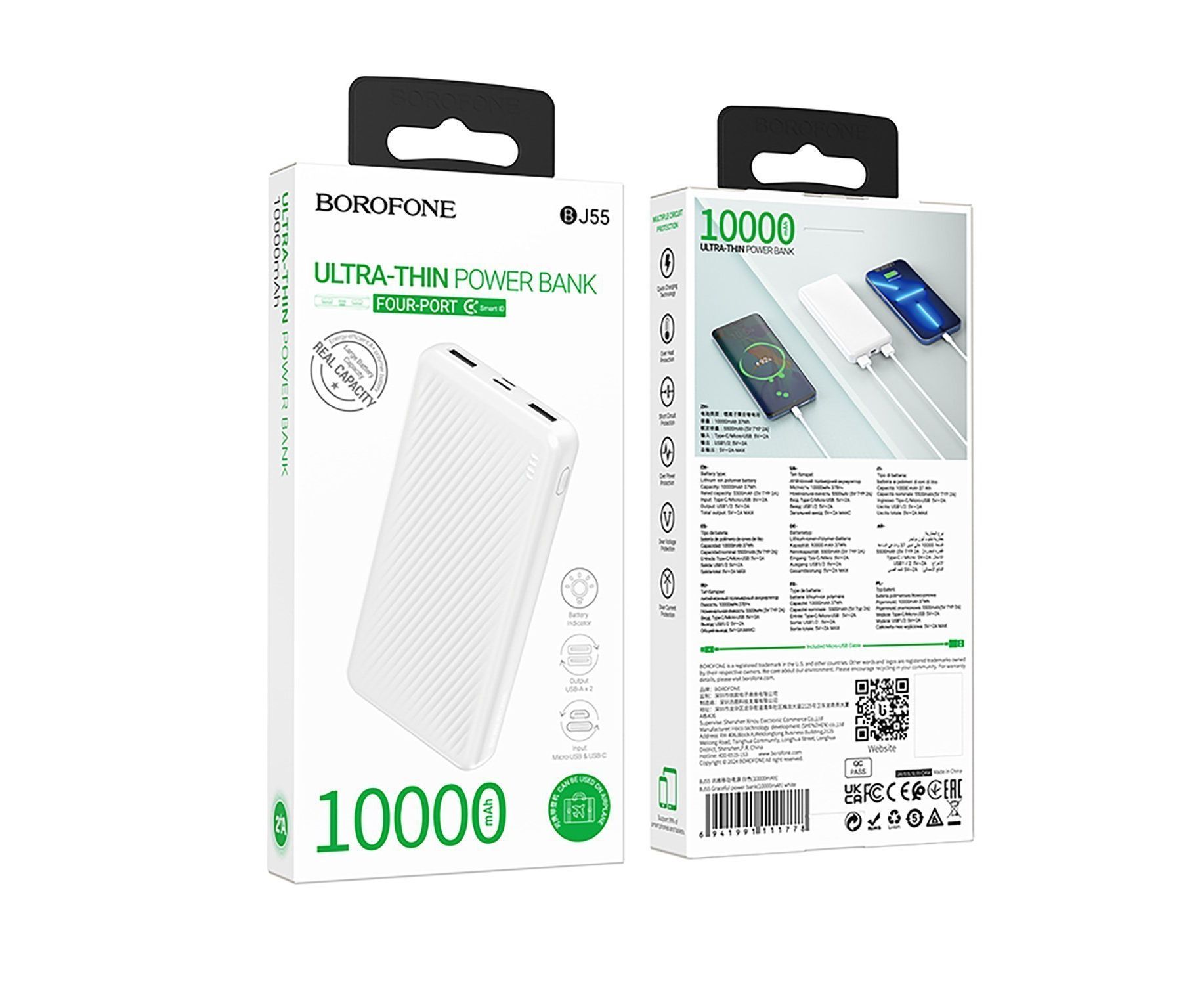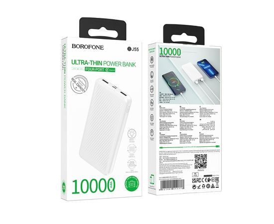 Внешний аккумулятор Borofone BJ55 10000mAh 2USB/Type-C (white)(235109)