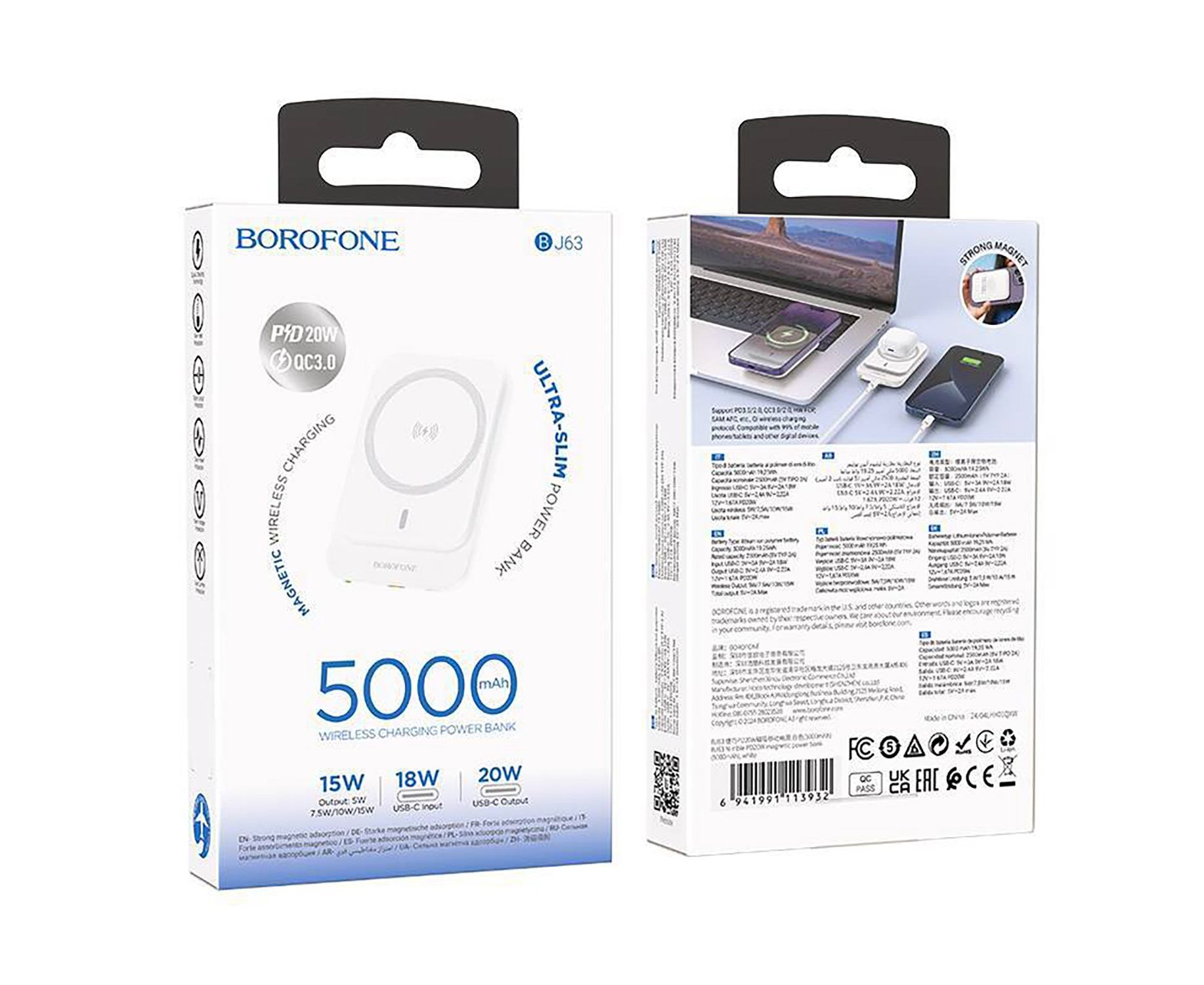 Внешний аккумулятор Borofone BJ63 PD20W 5000mAh Type-C/Type-C/MagSafe (white)(242486)