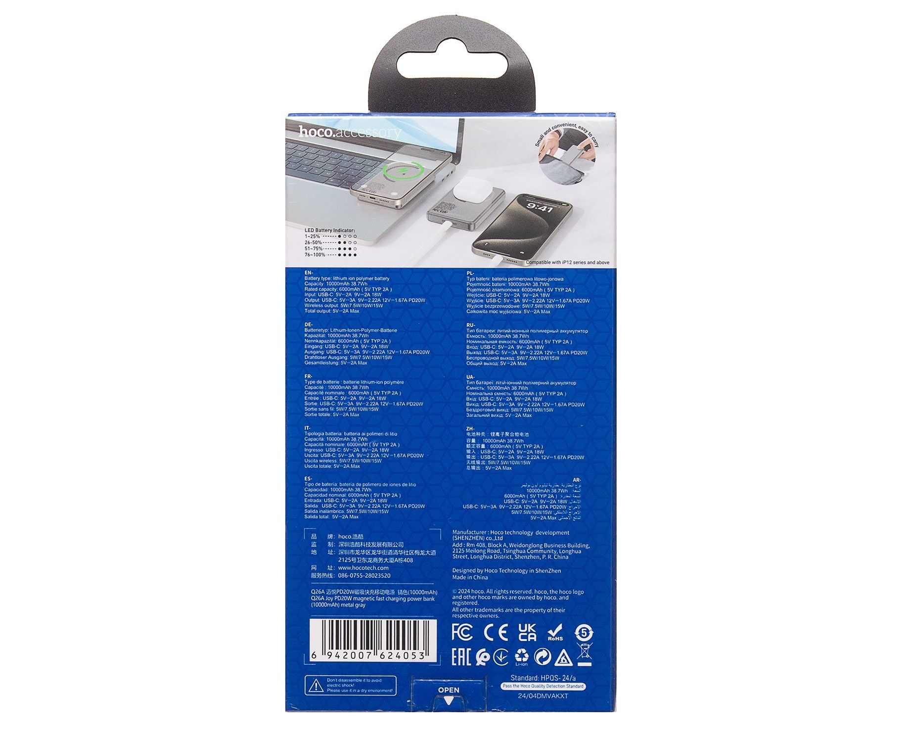 Внешний аккумулятор Hoco Q26a Joy PD20W MagSafe 10000mAh Type-C/Type-C/MagSafe (metal gray)(239599)