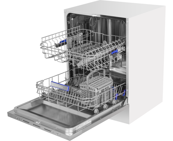 внутренняя поверхность из нержавеющей стали, использование средств 3 в 1, регулируемая по высоте корзина для посуды, сенсор чистоты воды, таймер отсрочки, быстрая мойка, индикатор наличия ополаскивателя, индикатор наличия соли, экономичная программа