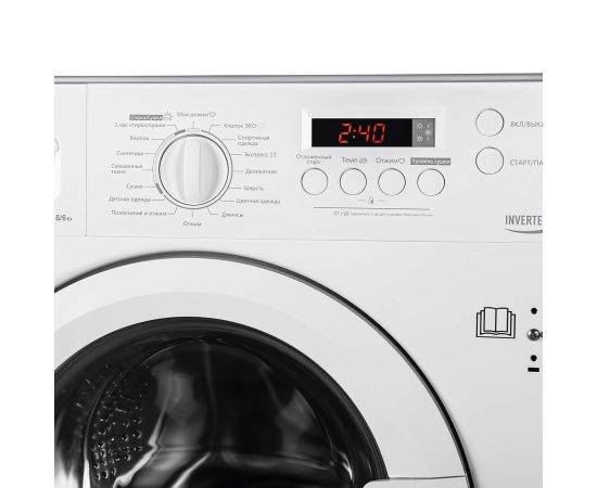 • Максимальная загрузка белья: 8 кг - стирка, 6 кг - сушка.