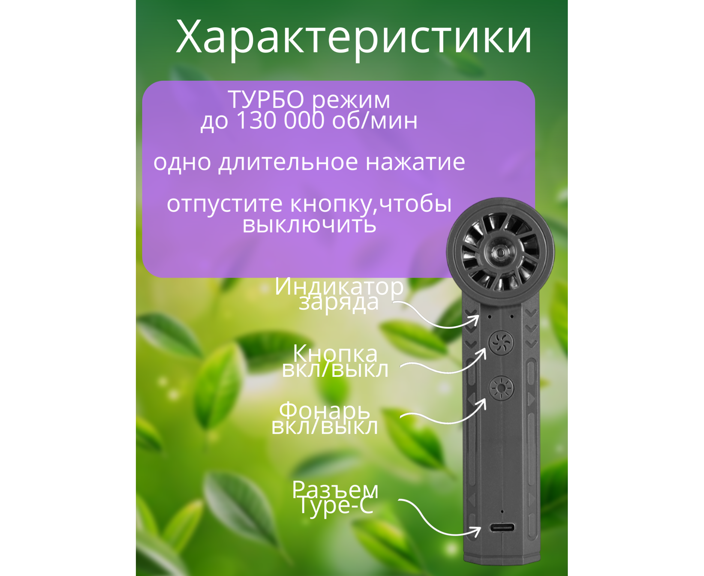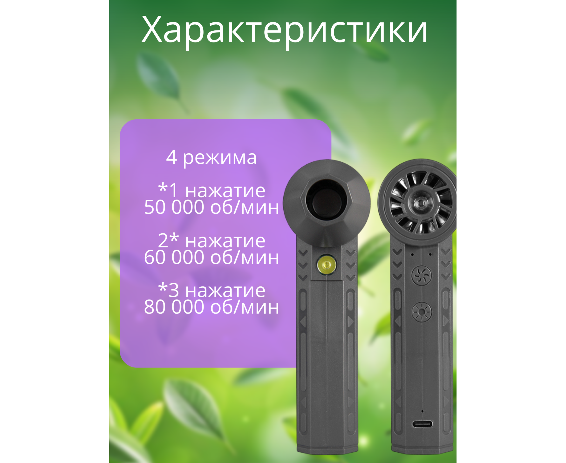 Высокоскоростной турбовентилятор GS2 , 4 режима работы (Черный)