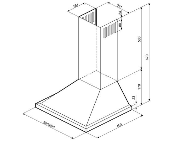 Искали вытяжку под духовку и варочную панель на 450. Эта со своими 500 мм подошла.
