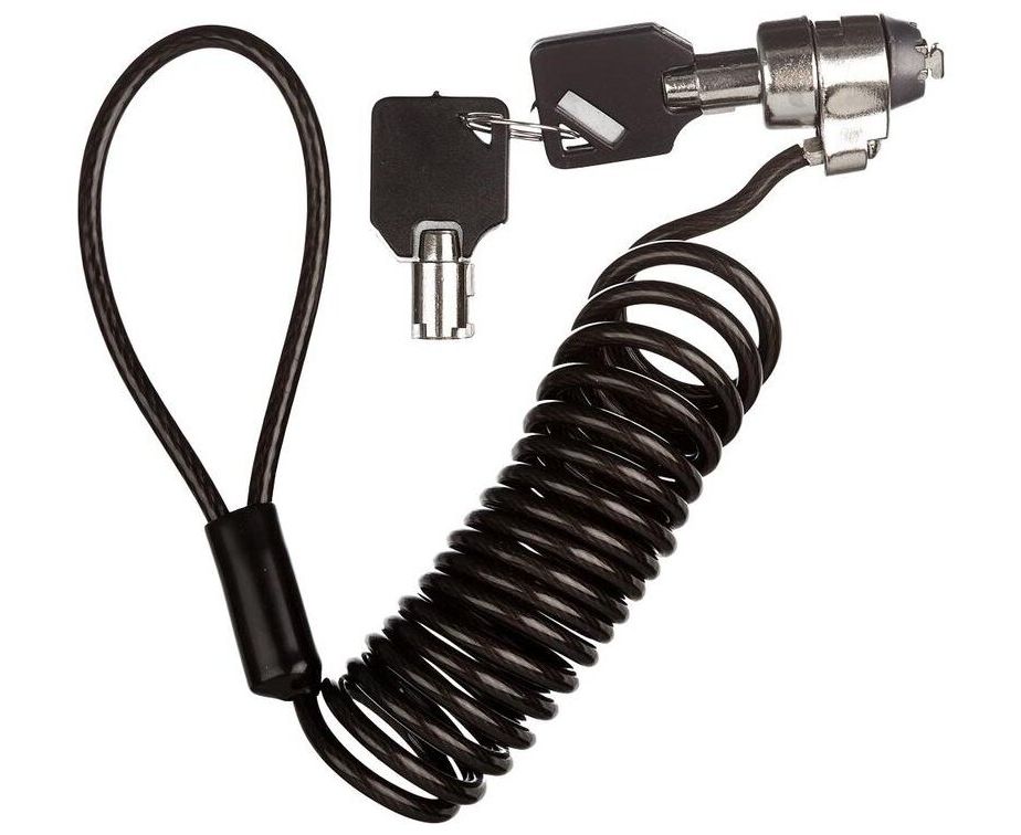 Запирающее кабельное устройство NCL-103 для ноутбука. Необходимо обмотать стальной трос вокруг какого-либо неподвижного предмета - например, ножки шкафа и подключить трос к замку. В комплекте два ключа. Устанавливается трос безопасности как правило, в гнездо безопасности ноутбука Kensington lock.