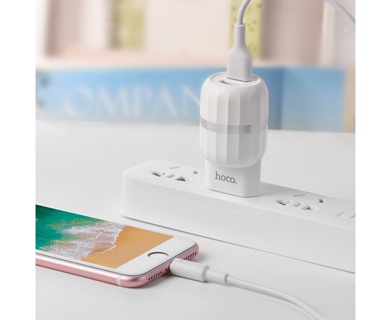 Сетевое зарядное устройство HOCO C41A Wisdom 2xUSB с Кабелем USB - Micro, 2.4A, 10.8W, белый
