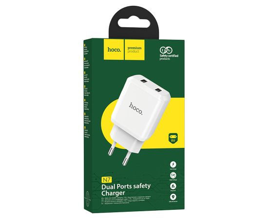 Сетевое зарядное устройство HOCO N7 Speedy 2xUSB, 2.1A, 10.8W, белый