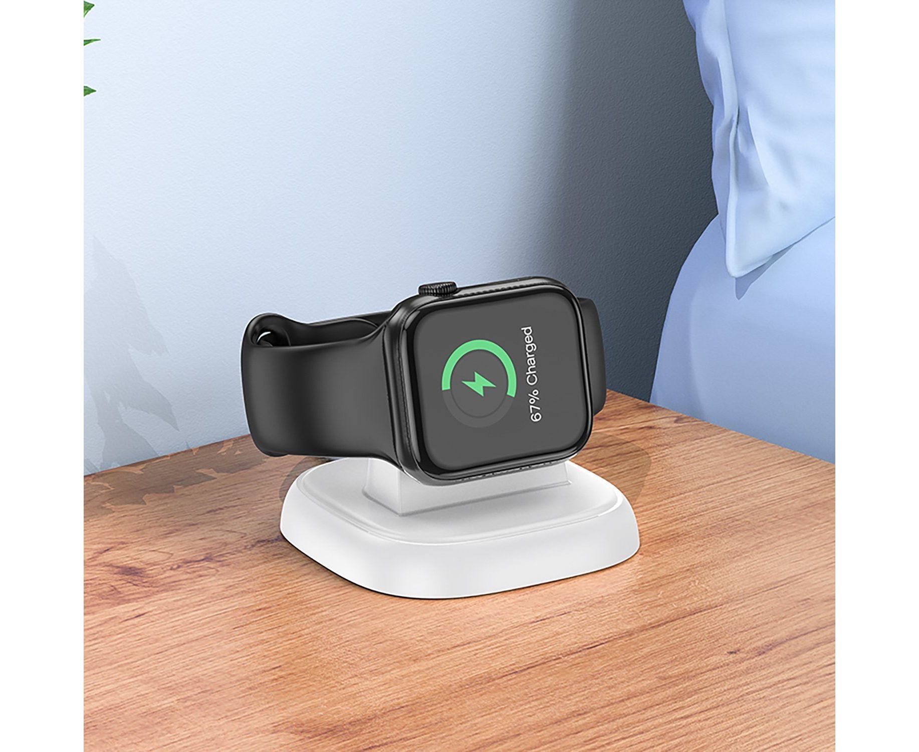 hoco CW44 подходит для беспроводной зарядки Apple Watch любого поколения. Чтобы зарядить часы, с помощью представленного аксессуара, достаточно просто положить их на небольшую круглую платформу. Это очень удобно, с CW44 больше не нужно тратить время на поиск кабеля и его присоединение.